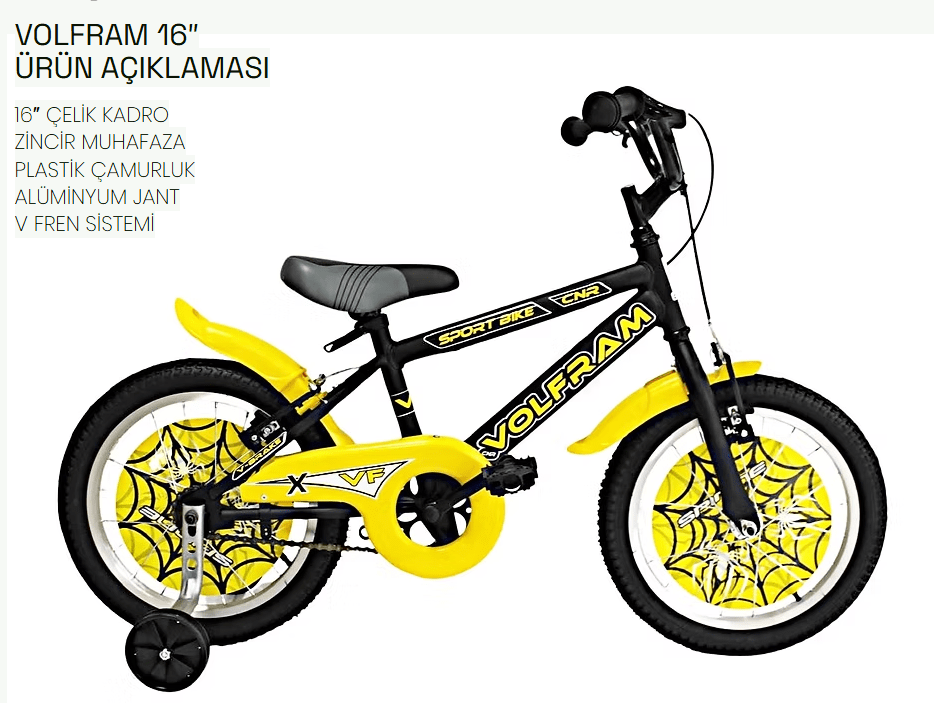 Volfram Bisiklet olarak 3 ile 17 yaş arası kullanıcılar için farklı yaş gruplarına ve ihtiyaçlara özel bisikletler üretiyoruz. Renk, model ve donanım açısından zengin ürün yelpazemizle hem bireysel kullanıcıların hem de bayilerimizin beklentilerine tam anlamıyla cevap veriyoruz. Her bisiklet, sağlamlık, konfor ve estetik çizgilerle buluşuyor.